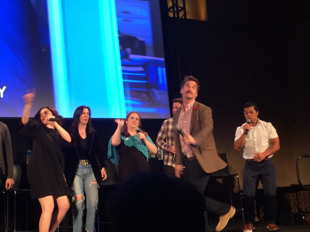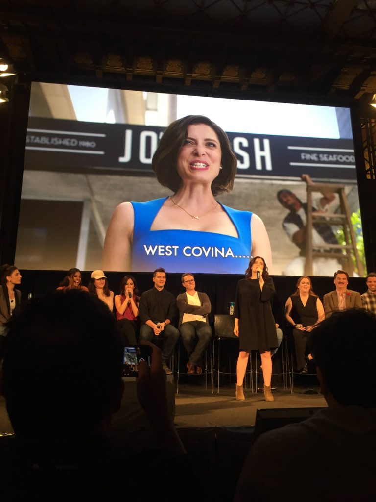 I‘ve done a few cool things this year – visiting Lucasfilm with Mayim, and going on sponsored trips to Kenya and Poland, for example – but when I read online that the cast of “Crazy Ex-Girlfriend” was doing a singalong at the Vulture Festival, I basically did a twirl and began singing “West Coviiiiiinnnaaaaa….CaliFORniaaaaaa…” (Photos and videos below, so read on!)