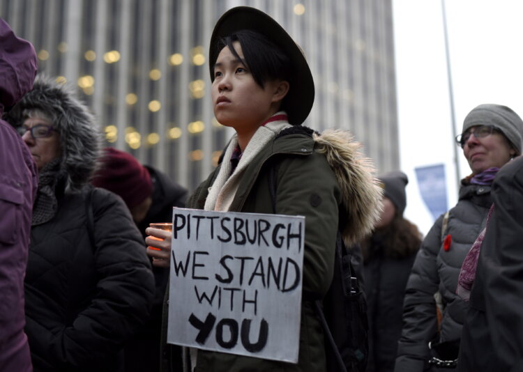 Liz Friedman, founder of We Stand Together, recalls being in synagogue in Western Massachusetts when she found out about the Tree of Life shooting. “We started weeping while we prayed,” Friedman says. “And we were trembling. And we held on to each other while the tears streamed down our faces. And we sang. And I thought, how quickly can I throw my daughter down on the floor and throw my body on top of hers. Can I be fast enough to save her life?”