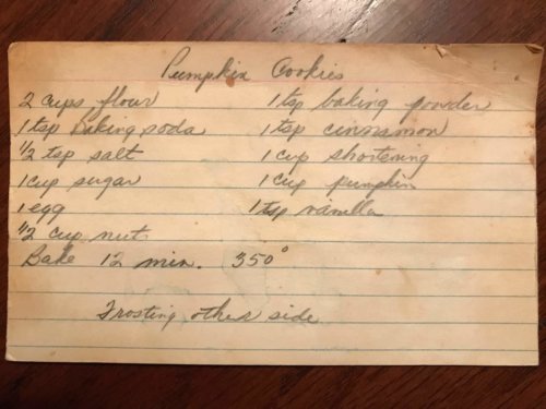 My mom called a few days before the holiday and asked what she could bring. I suggested dessert, we chatted for a few minutes, and then she said she’d make the glazed pumpkin cookies.